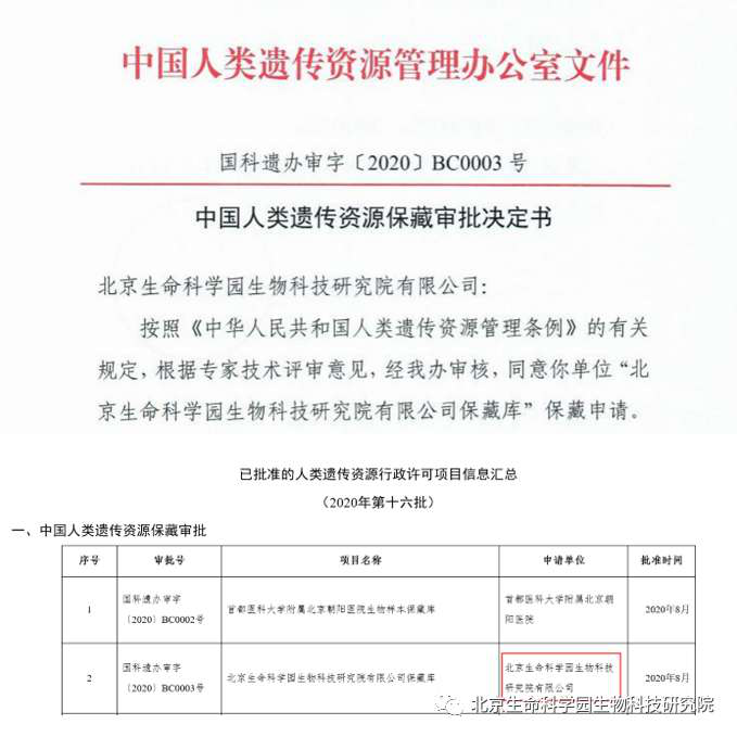 北京生命科學園生物科技研究院(以下簡稱“北京生物樣本資源庫”)(Biobank of Life Science Park,簡寫“BoLSP”)是一家由北京市科委和中關村生命科學園共同支持設立的第三方生物樣本庫公共服務平臺,秉承北京重大疾病臨床數(shù)據(jù)和樣本資源庫(以下簡稱“北京庫”)(Beijing Biobank of Clinical Resources,BBCR)十余年的發(fā)展成果,聚合眾多臨床樣本專家的專業(yè)共識,致力于在生命科學、生物醫(yī)藥研究領域發(fā)揮銜接樣本資源持有者與研究者的橋梁作用,解決生物樣本資源開發(fā)上下游信息不對稱、資源共享困難等問題。研究院在北京中關村生命科學園昌平園區(qū)建立了2000㎡生物樣本庫,最大存儲規(guī)模達1000萬份。研究院遵循CNAS-CL10:2020《生物樣本庫質量和能力認可準則》,同時結合北京庫過去十年的工作經驗與教訓,建立了一套完善的生物樣本保藏質量管理體系,從人、機、料、法、環(huán)、控多個角度,實現(xiàn)生物樣本保藏過程的全面質量控制,先后獲得國家科技部頒發(fā)的人類遺傳資源保藏行政許可證書和中國合格評定國家認可委員會(China National Accreditation Service for Conformity Assessment,CNAS)頒發(fā)的“CNAS認可證書”。